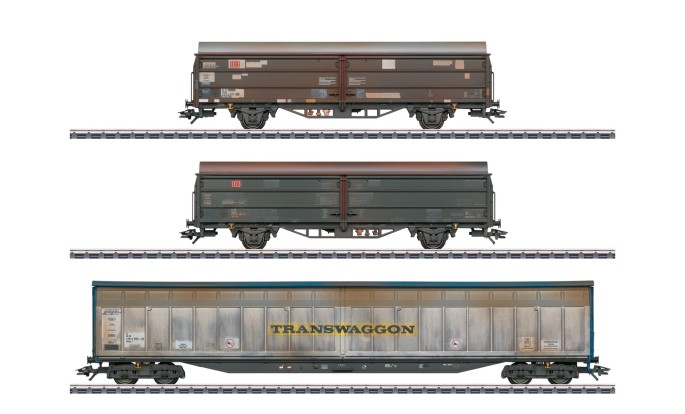 Passend zur Ragierlok der Baureihe 360 kommt dieses Wagenset exklusiv zu den mhi-Händlern. Es besteht aus drei gedeckten Güterwagen wie sie in der Epoche V für den Stückguttrasport typisch waren. Enthalten sind zwei Schiebewandwagen der Gattung Hbis-ww 299 der DB AG und ein großer Schiebewandwagen der Gattung Habins 12 der TRANSWAGGON eingestellt bei der DB AG. Alle drei Wagen sind hochwertig gealtert und stellen einen starkverwitterten Zustand dar. Ob Schmutz oder Ausbesserungen, hier wurden alle Details nachgestellt.