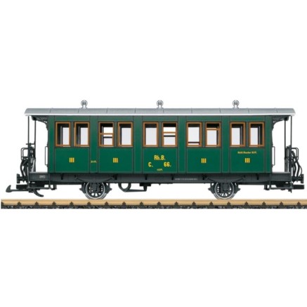 der 2-achsige Personenwagen Nr. C 66 der Rhätischen Bahn. Sein Vorbild wurde 1897 an die 1895 gegründete RhB geliefert und ist auch heute noch in Museumszügen im Einsatz